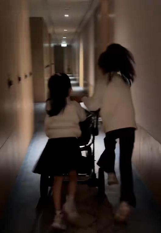 三胎女儿的到来,也给小家庭带来了无限的乐趣。两个姐姐争着要给妹妹推车,看得出姐妹俩是非常喜爱这个三胎小妹妹的。