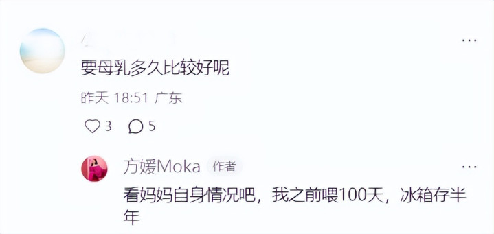 也就是说方媛是打算母乳亲喂到3个多月,然后就断奶了,把母乳挤出来放冰箱保存。这样宝宝就可以喝到9个月的母乳。相比一些纯奶粉喂养的妈妈,方媛其实已经算是称职的好妈妈了。