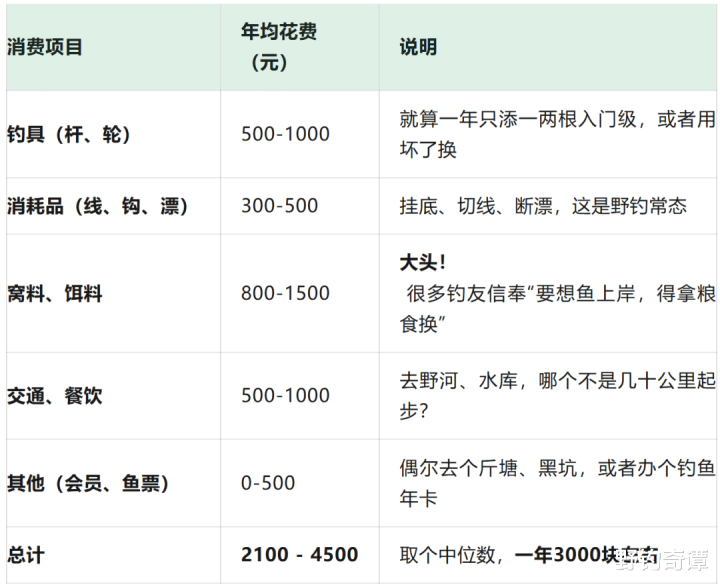 咱们来列个清单,我给钓友们做个“数据可视化”的图表,大家看得更明白。我们按一个普通野钓爱好者的“年均消费”来算,取个中间值,不算发烧友。